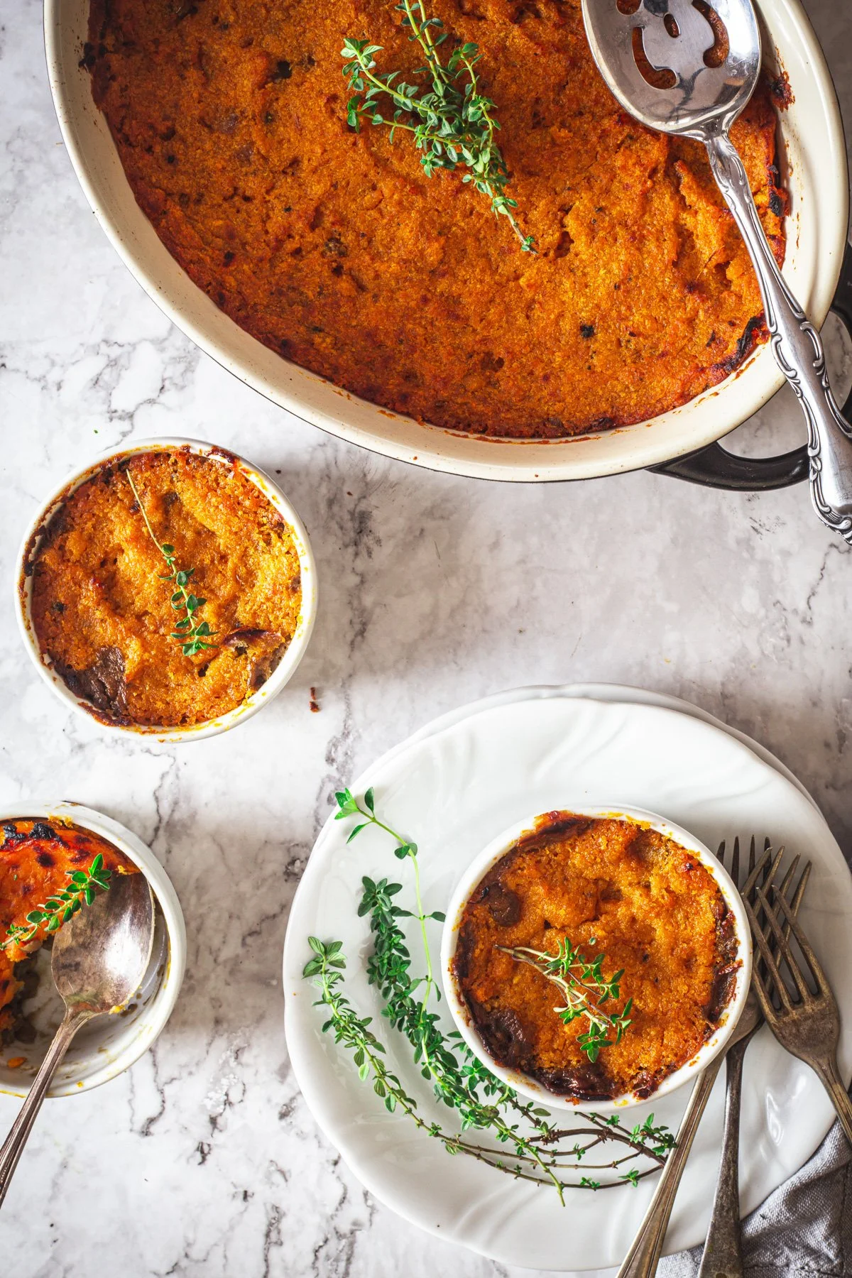 Make this vegan shepherd’s pie for Thanksgiving, Christmas or any celebration when you need a big, beautiful vegetarian main that is also gluten-free. Pair it with a refreshing salad and a slice of pumpkin pie for dessert, and your taste buds will thank you - along with all other vegetarians at the table!